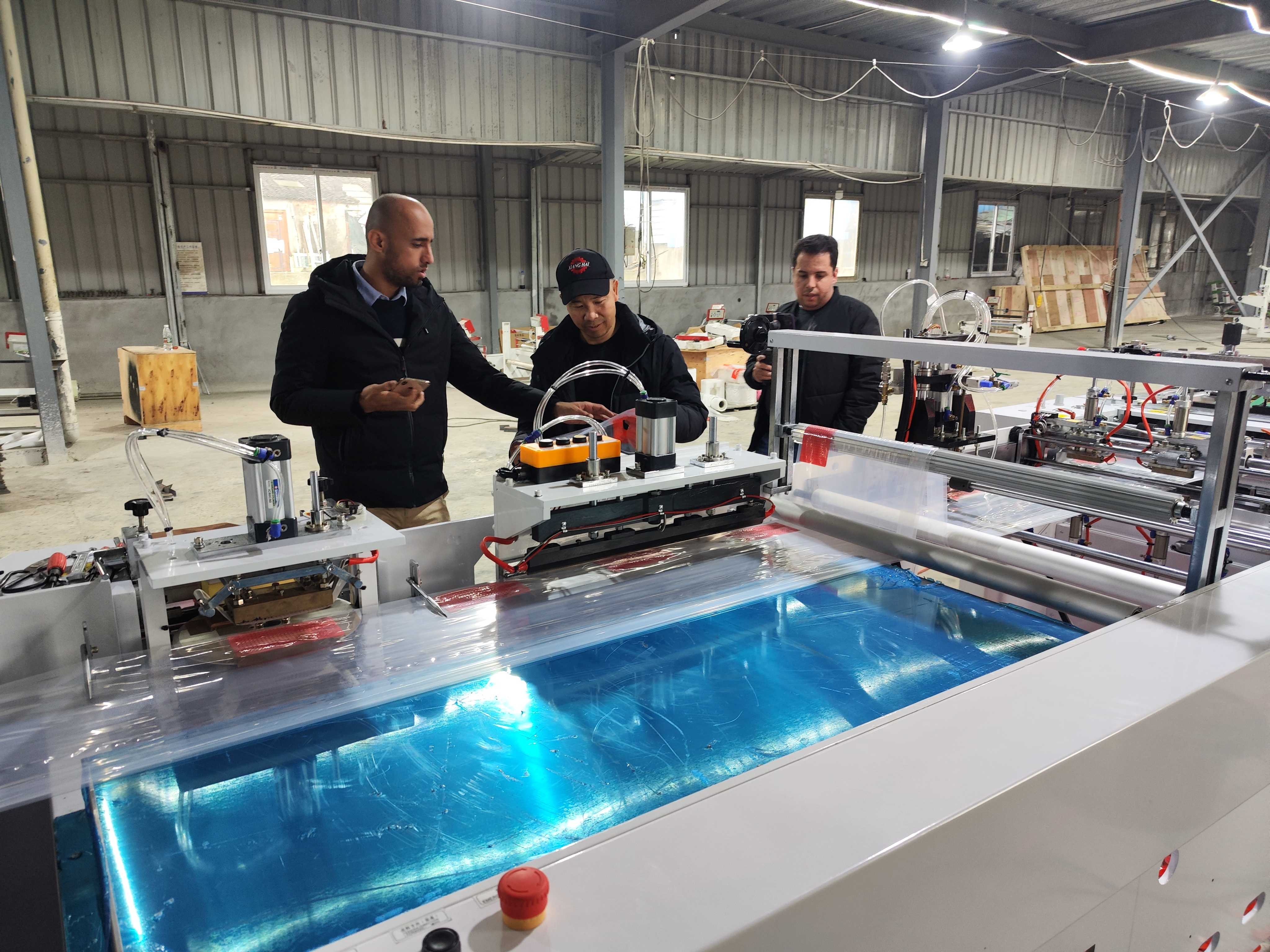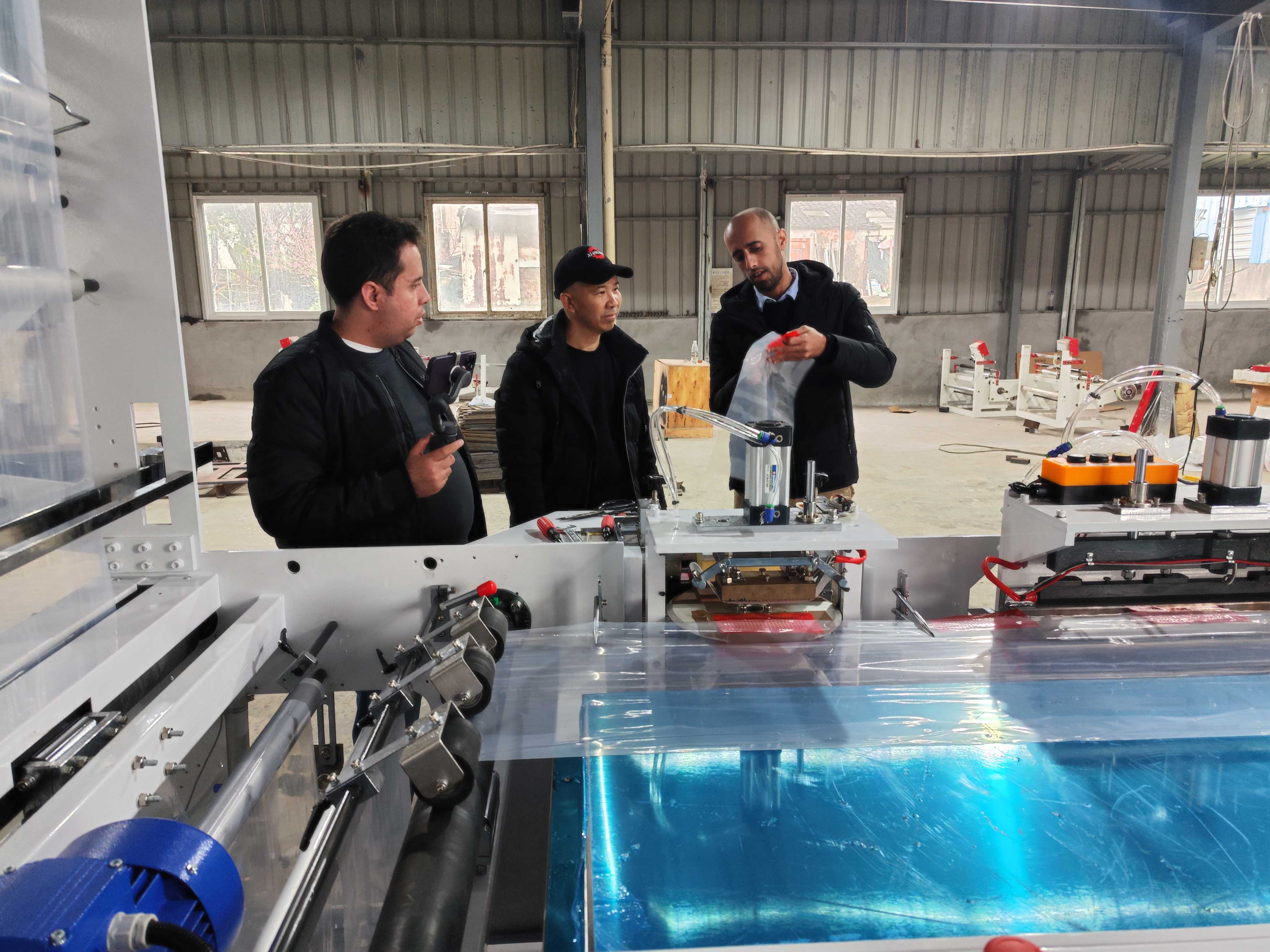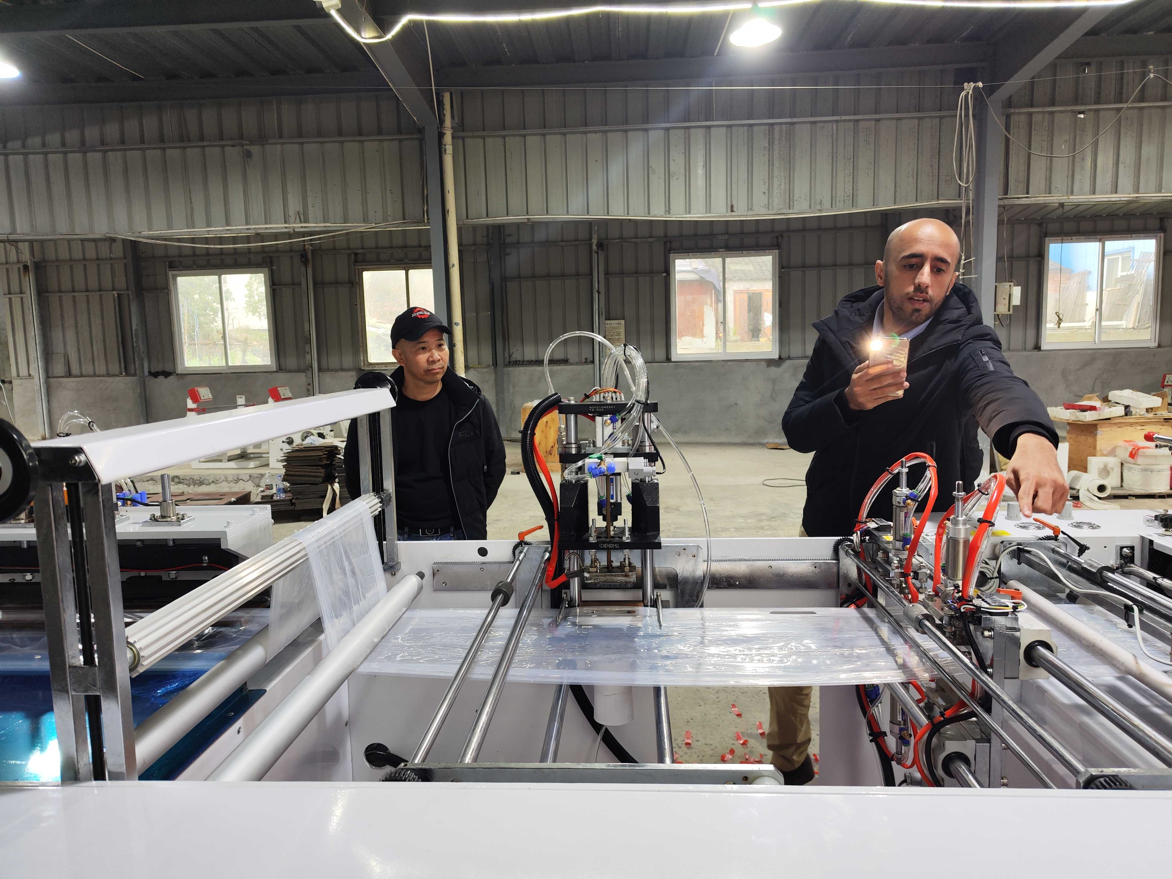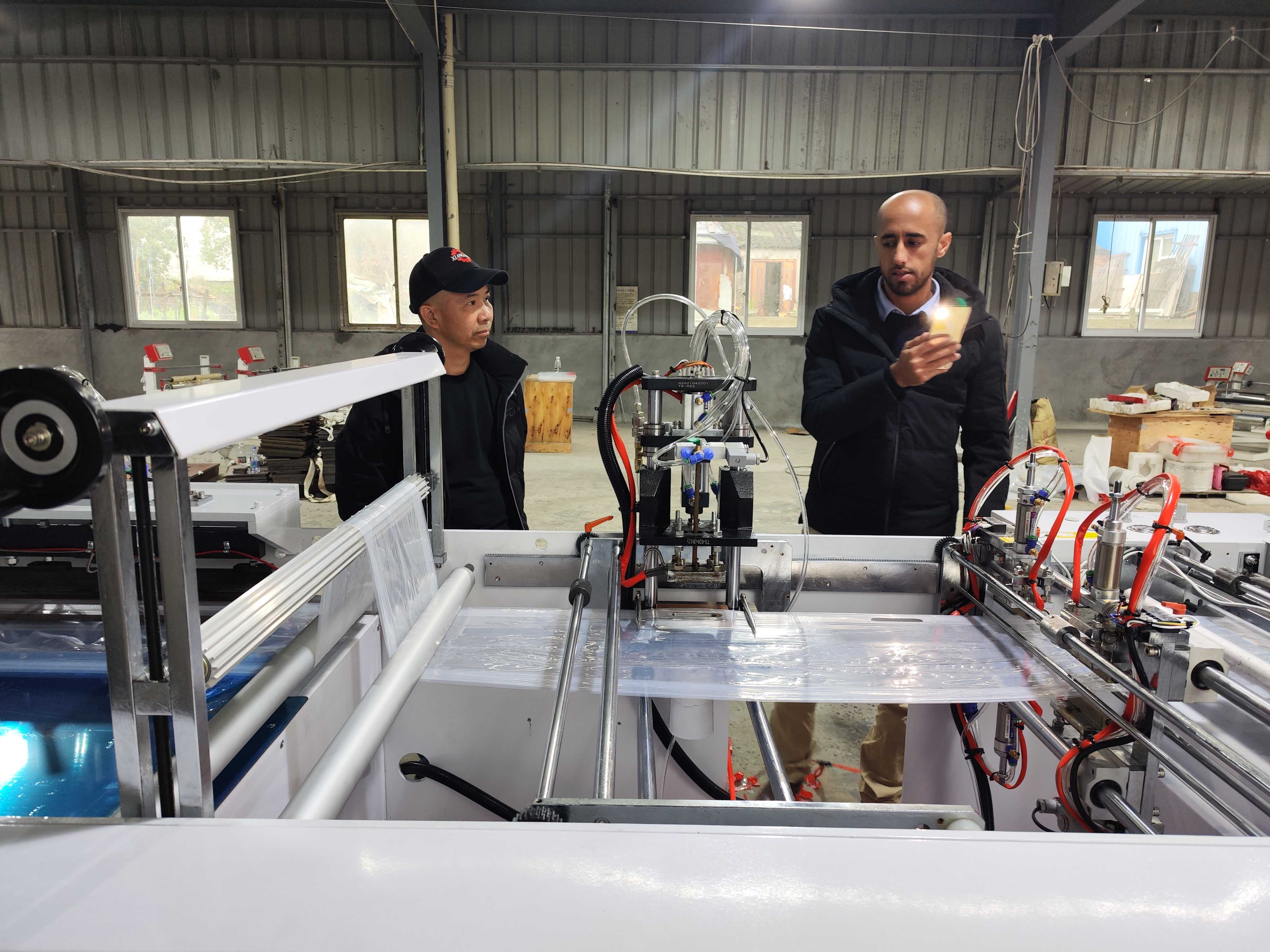 Клиент на фабрику для испытания машины. — Патч мягкая ручка мешок делая машину.