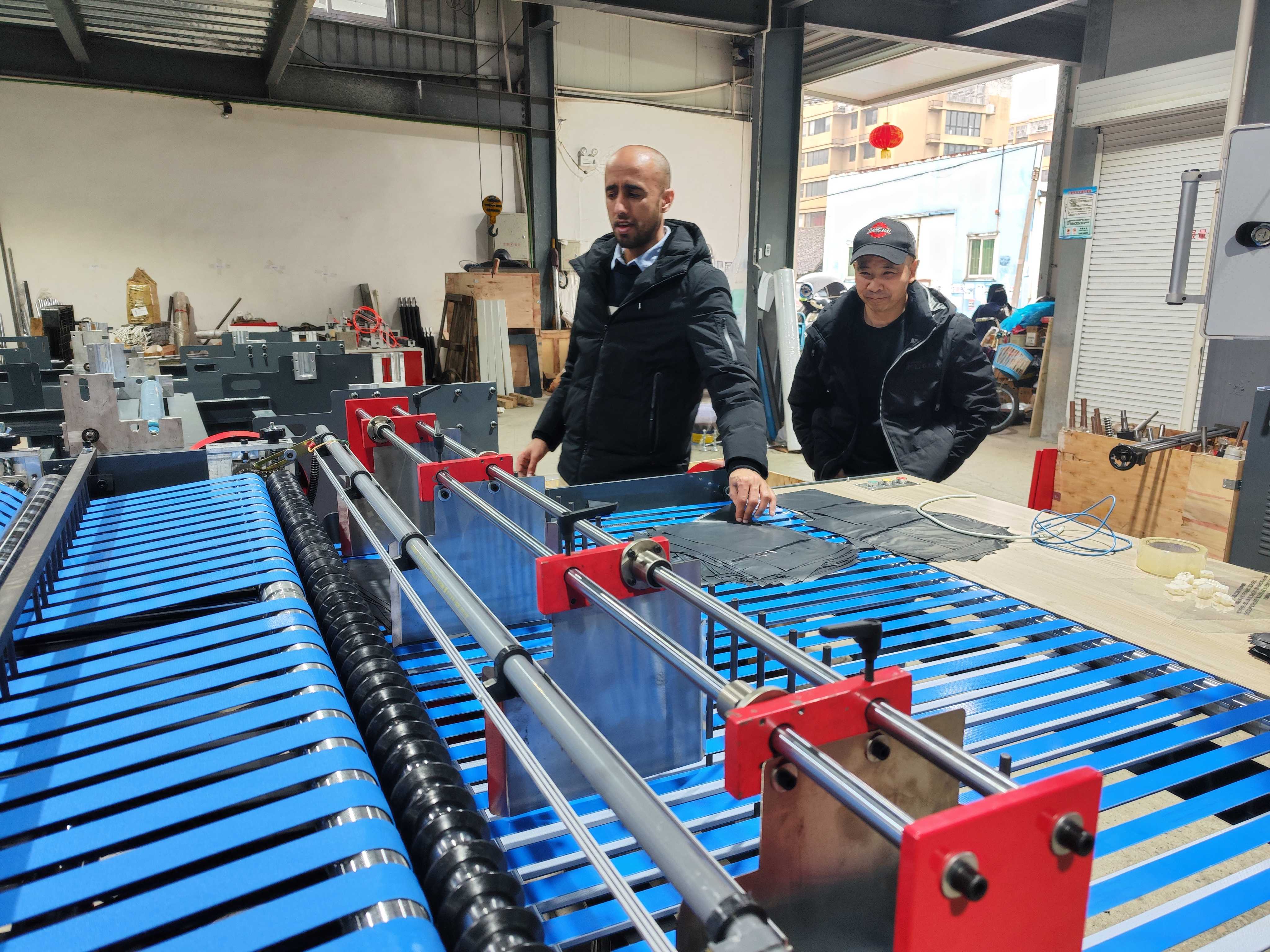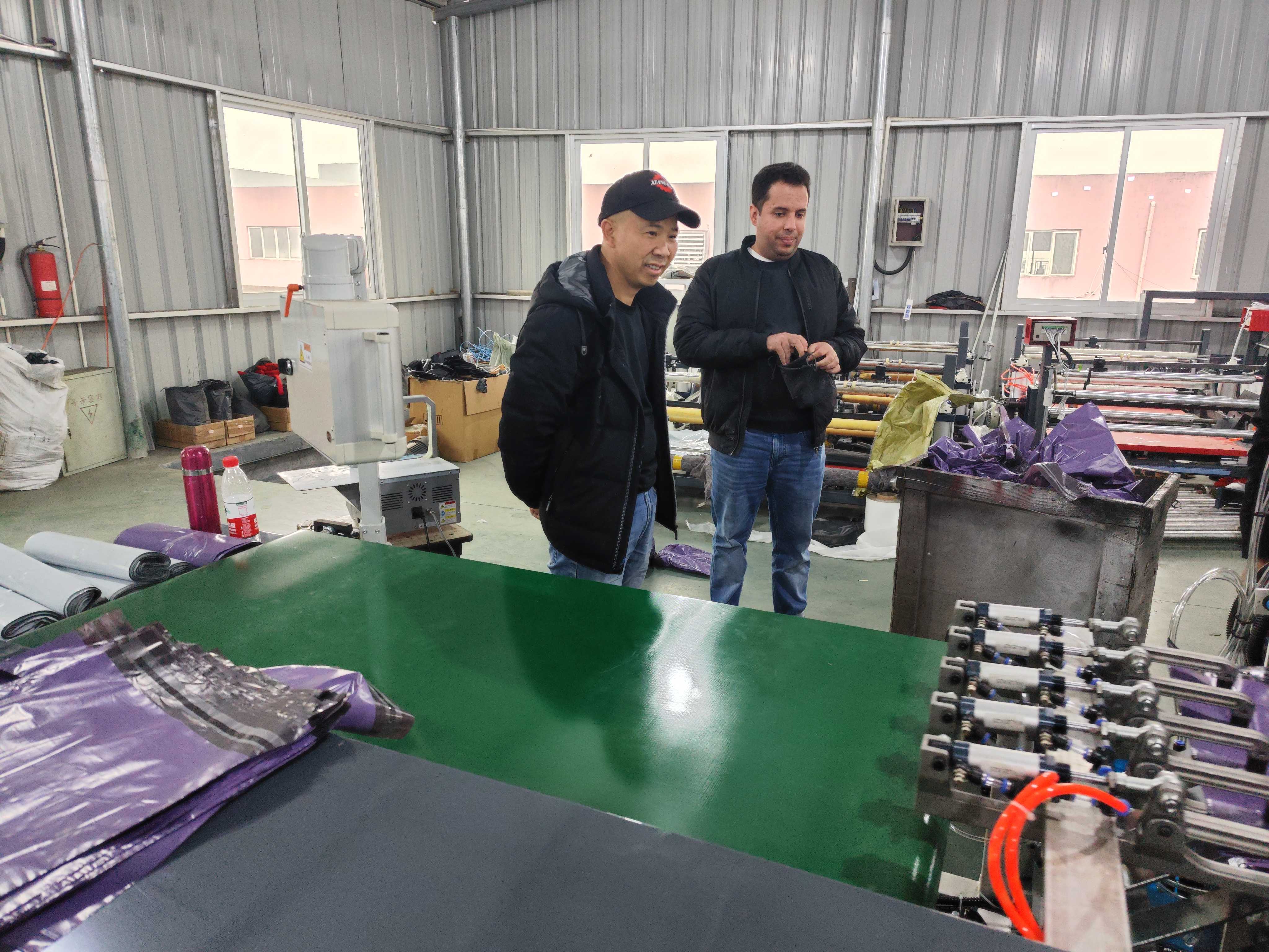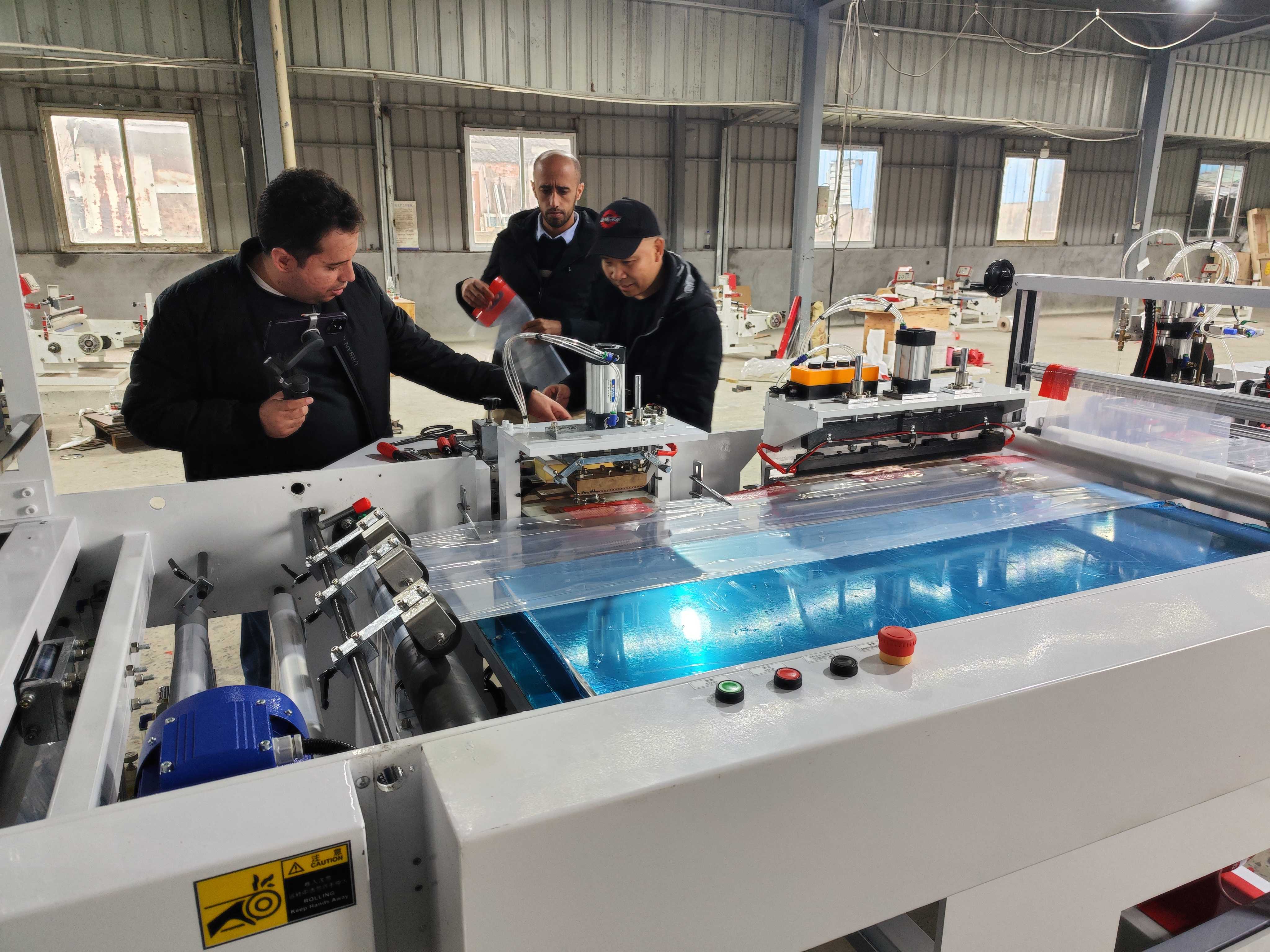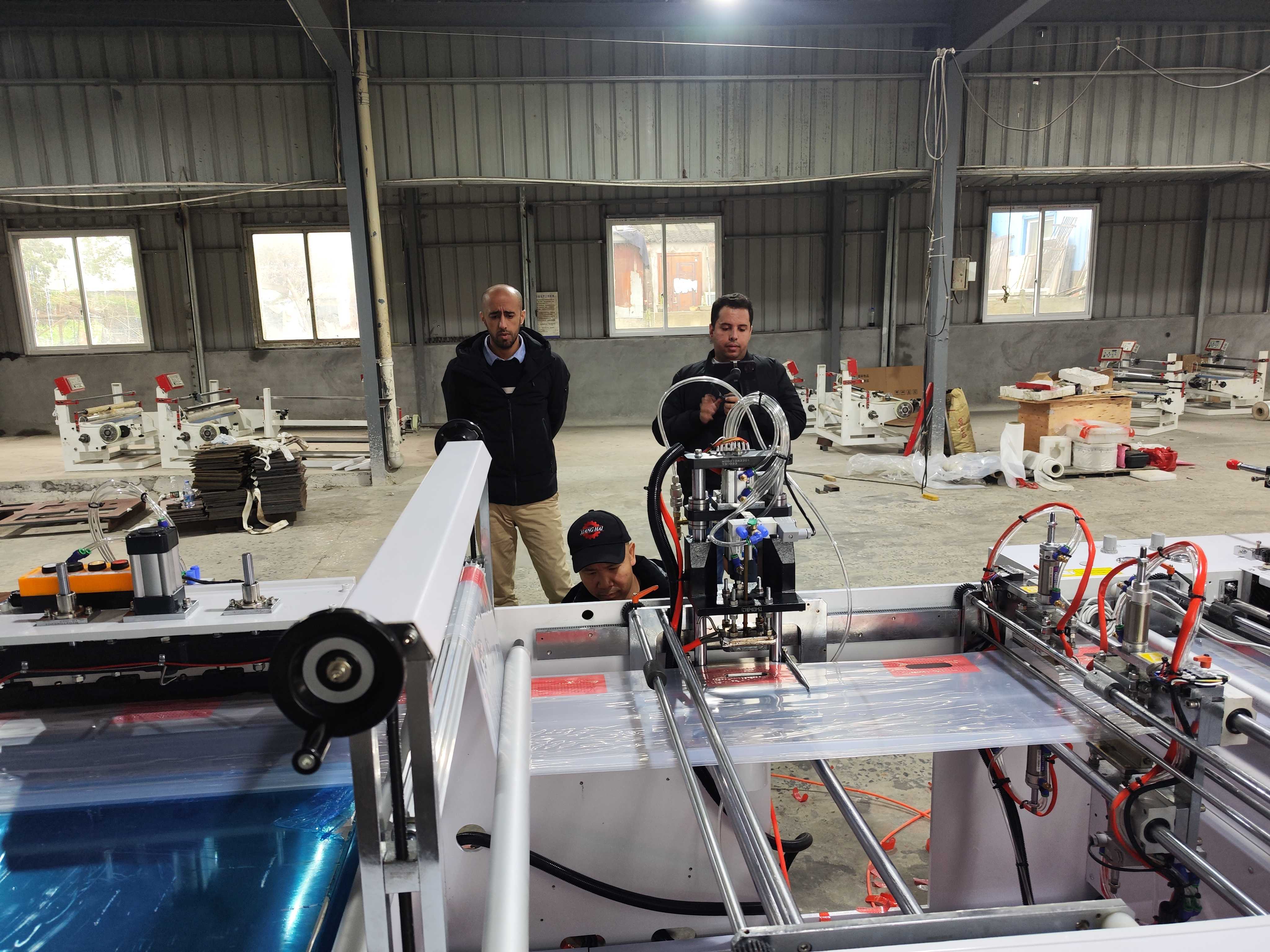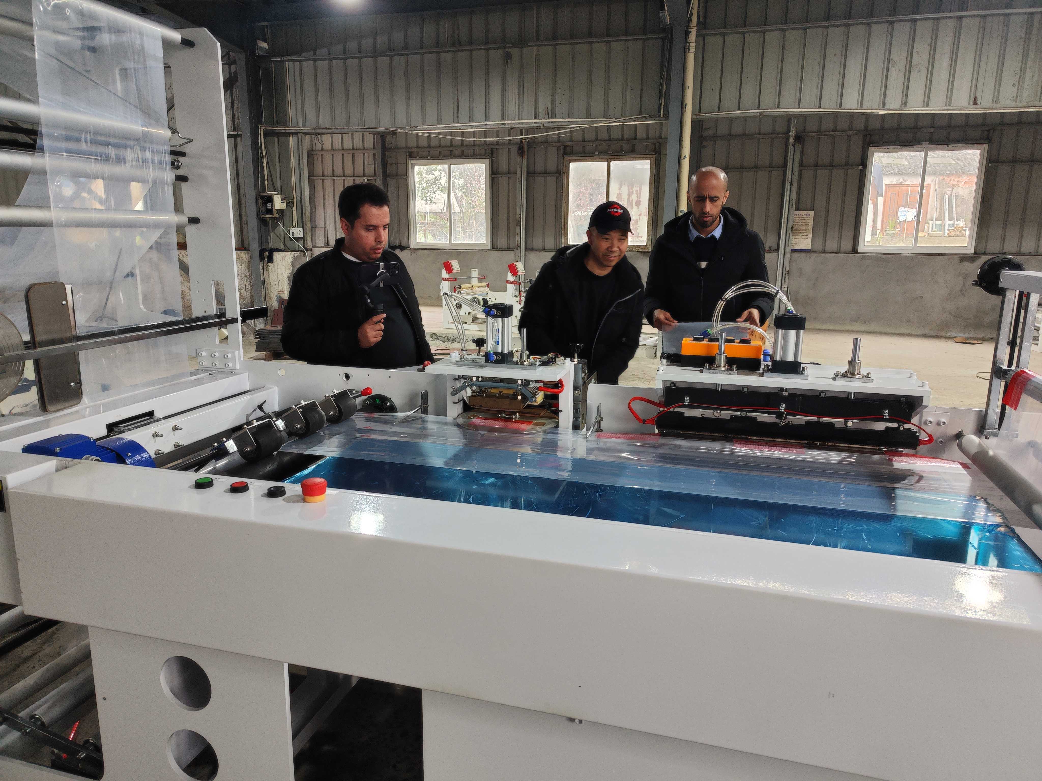 Клиент на фабрику для испытания машины. — Патч мягкая ручка мешок делая машину.