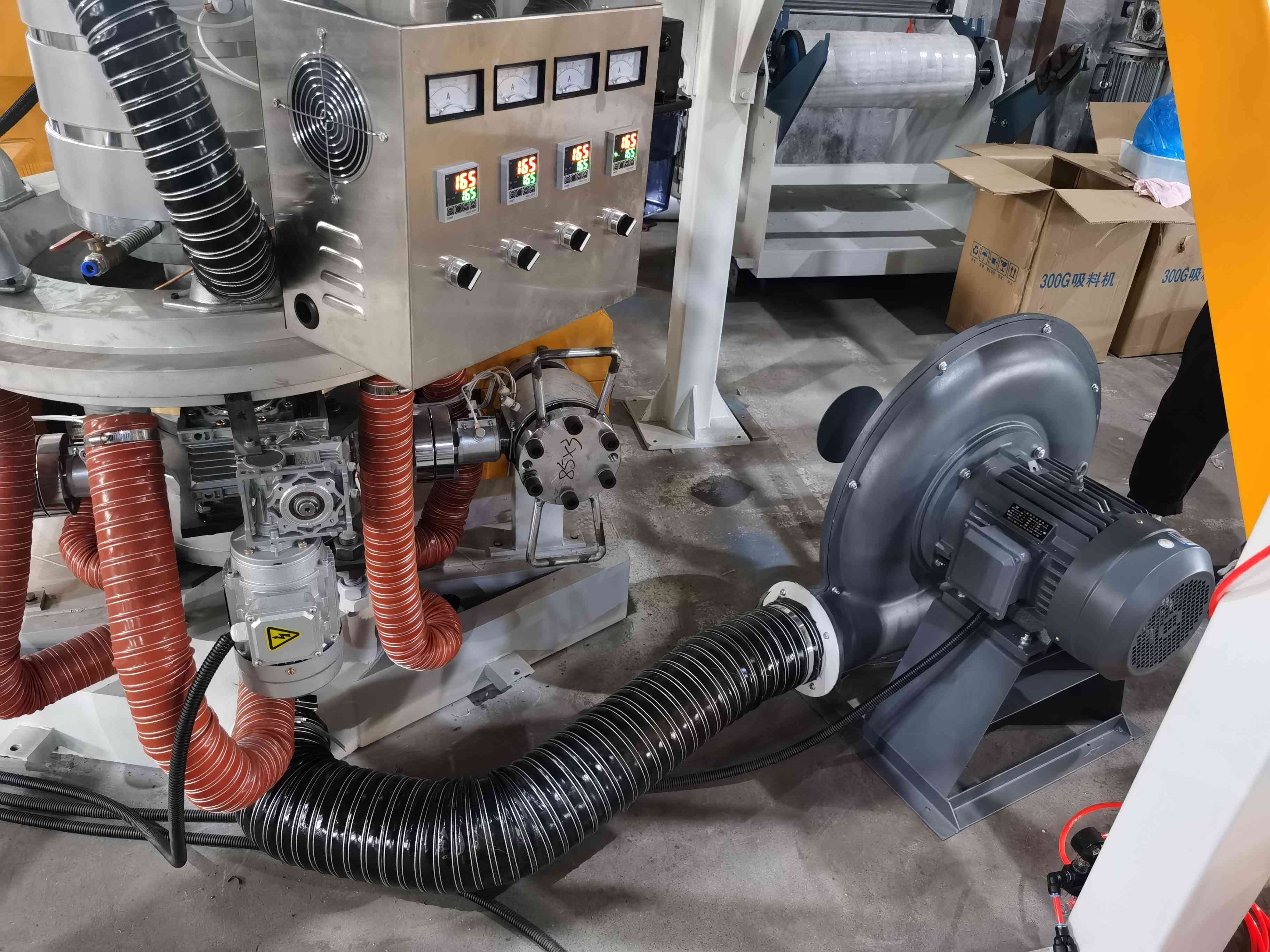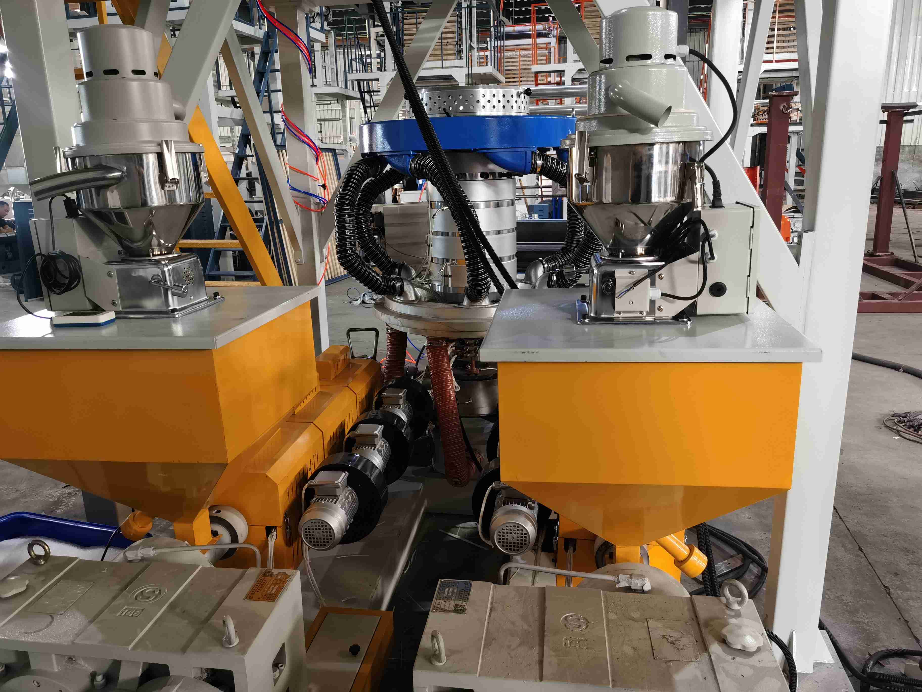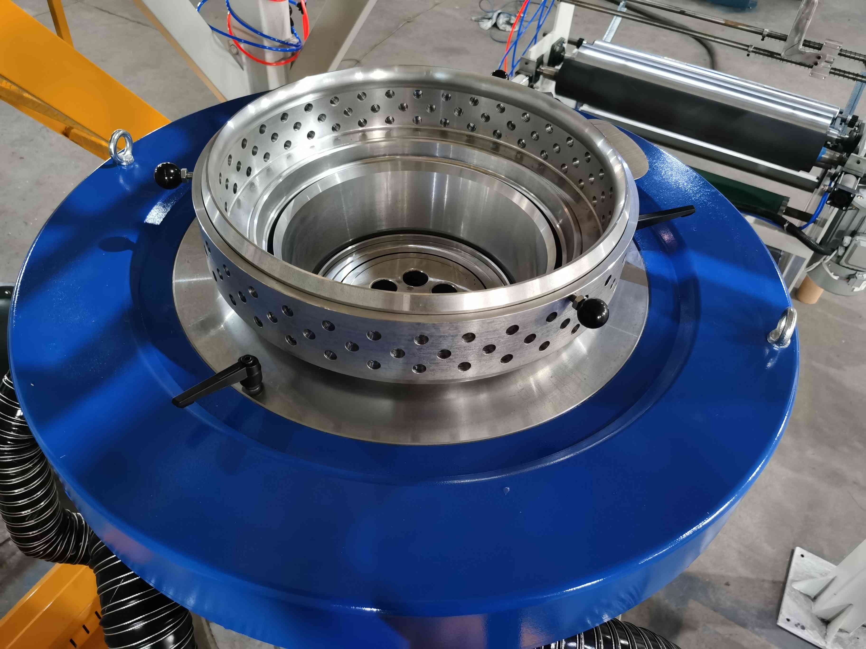 Эта машина Как цилиндр, так и винт экструдера изготовлены из высококачественной сплавной стали с помощью нитрации и точной отделки с лучшей твердостью и коррозионной устойчивостью. , научно разработанный, этот набор машин имеет две головки для одного экструдера с такими преимуществами, как увеличение производственных мощностей, экономия энергии, труда и мастерской площади и т. д.