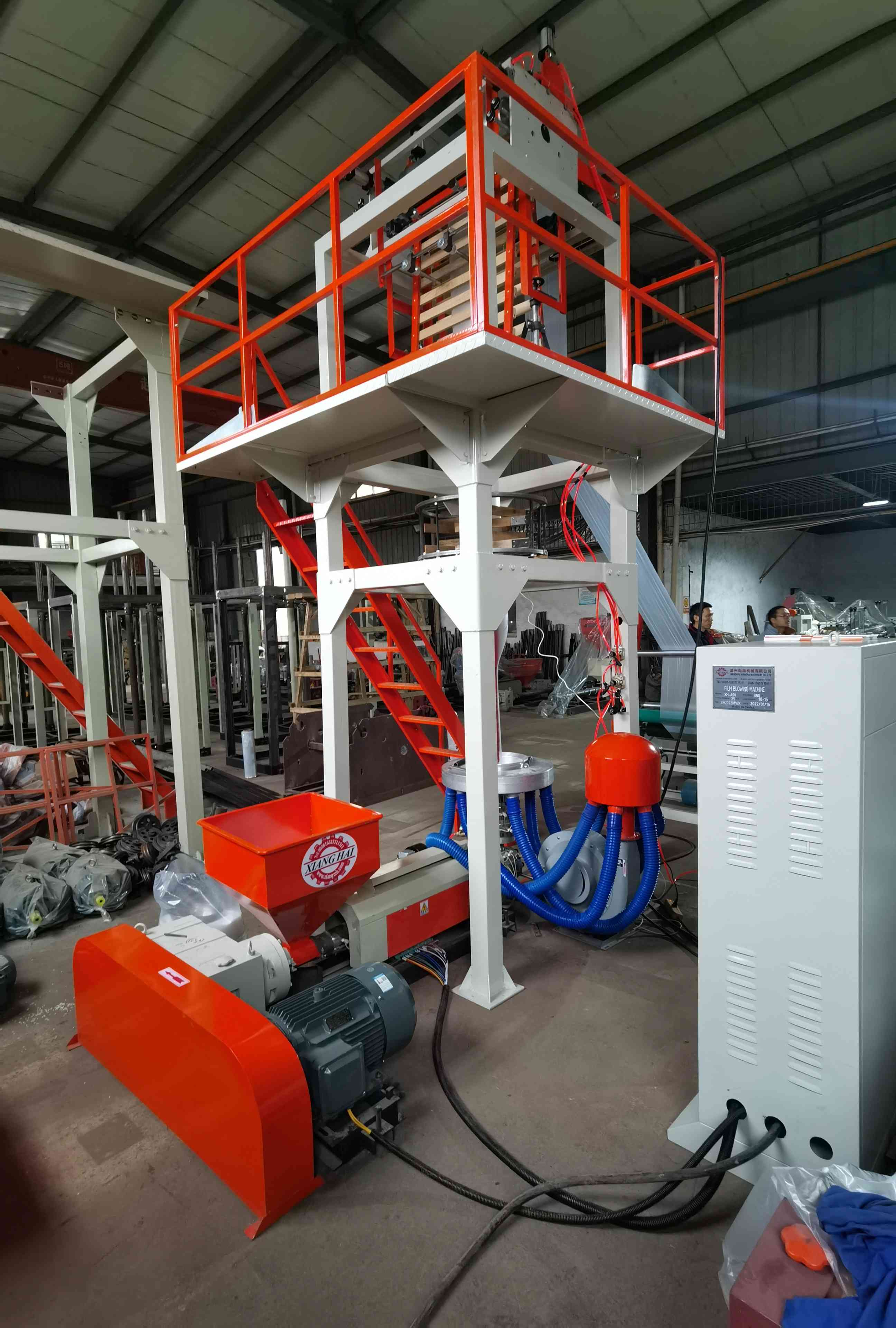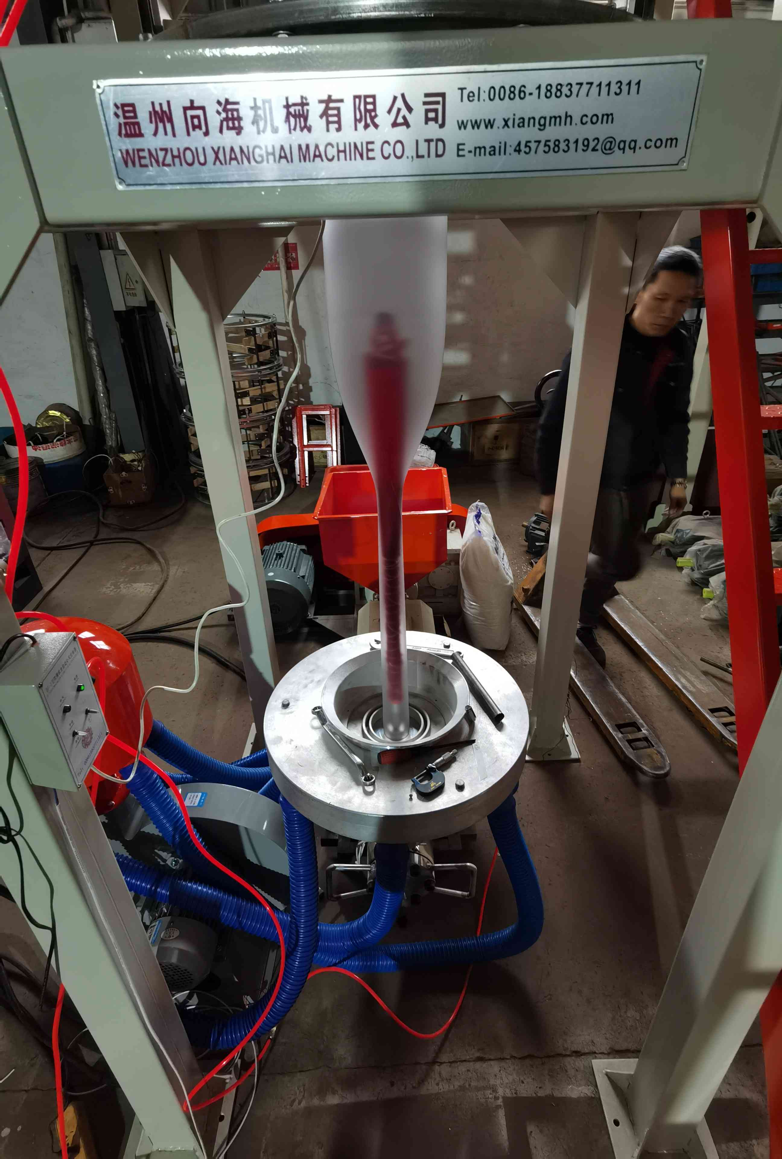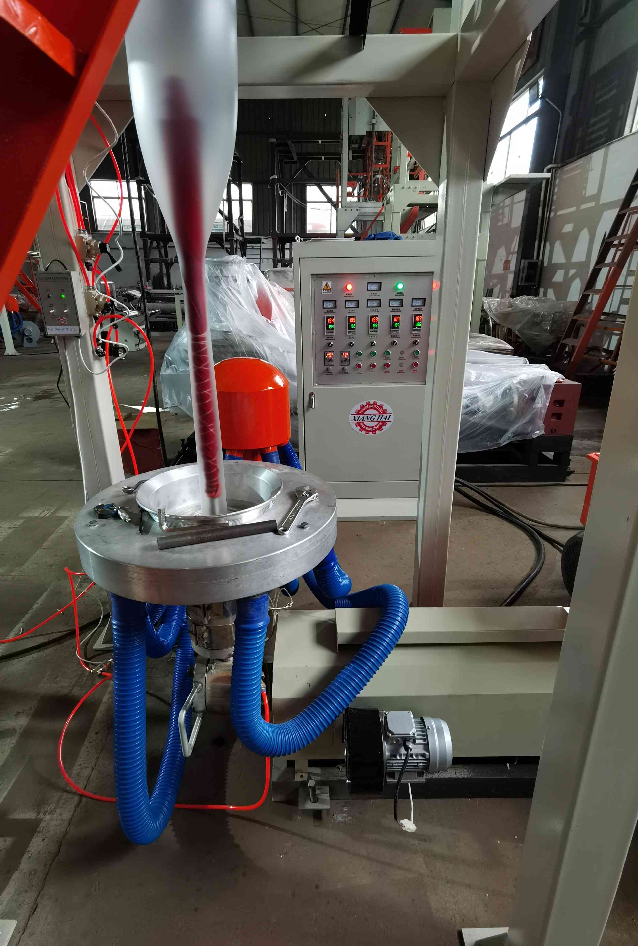 2. Голова штампа покрыта жестким хромом конструкции типа винтового мандрила с равномерным и гладким разрядом, выдуханная пластиковая пленка имеет тонкую отделку; Дувковщик имеет лабиринтную структуру с равномерным выходом воздуха.