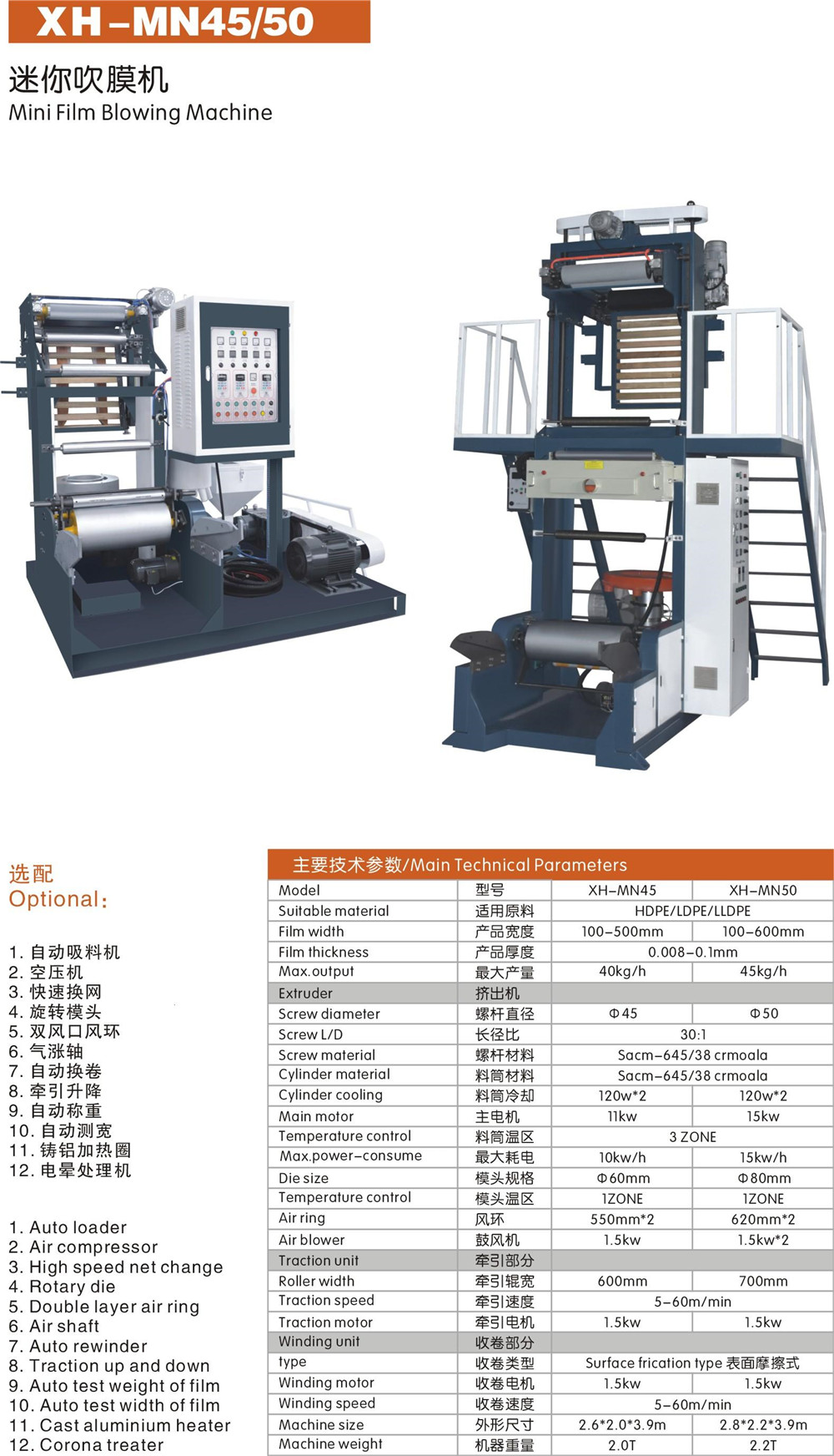 Он используется для воздуха полиэтилена низкой плотности (LDPE), полиэтилена высокой плотности (HDPE) и линейных пластиковых пленок полиэтилена низкой плотности (LLDPE) и других пленок, и широко используется в гражданской и промышленной упаковке, таких как продукты питания, одежда, мешки для мусора и мешки для футболок.