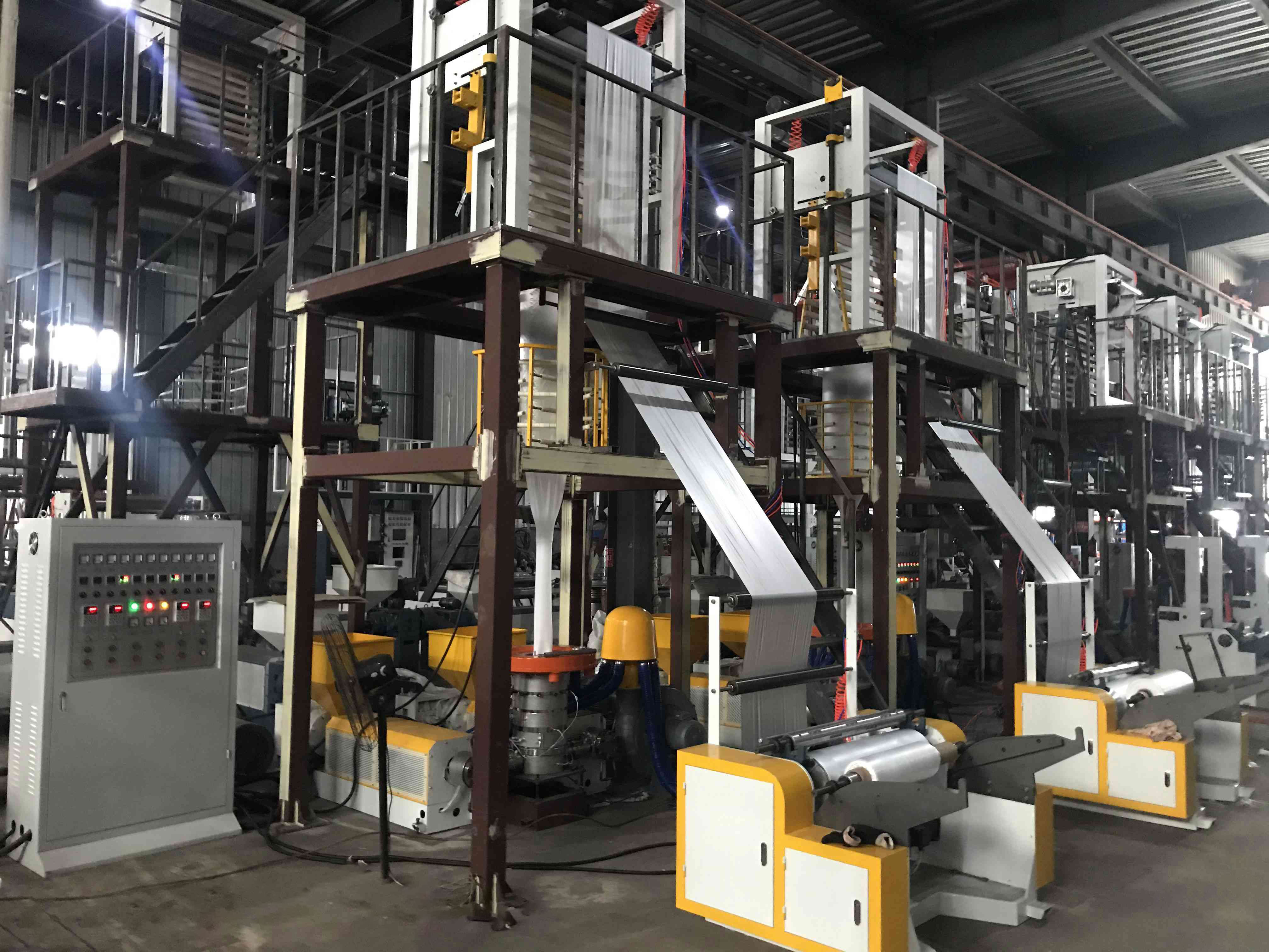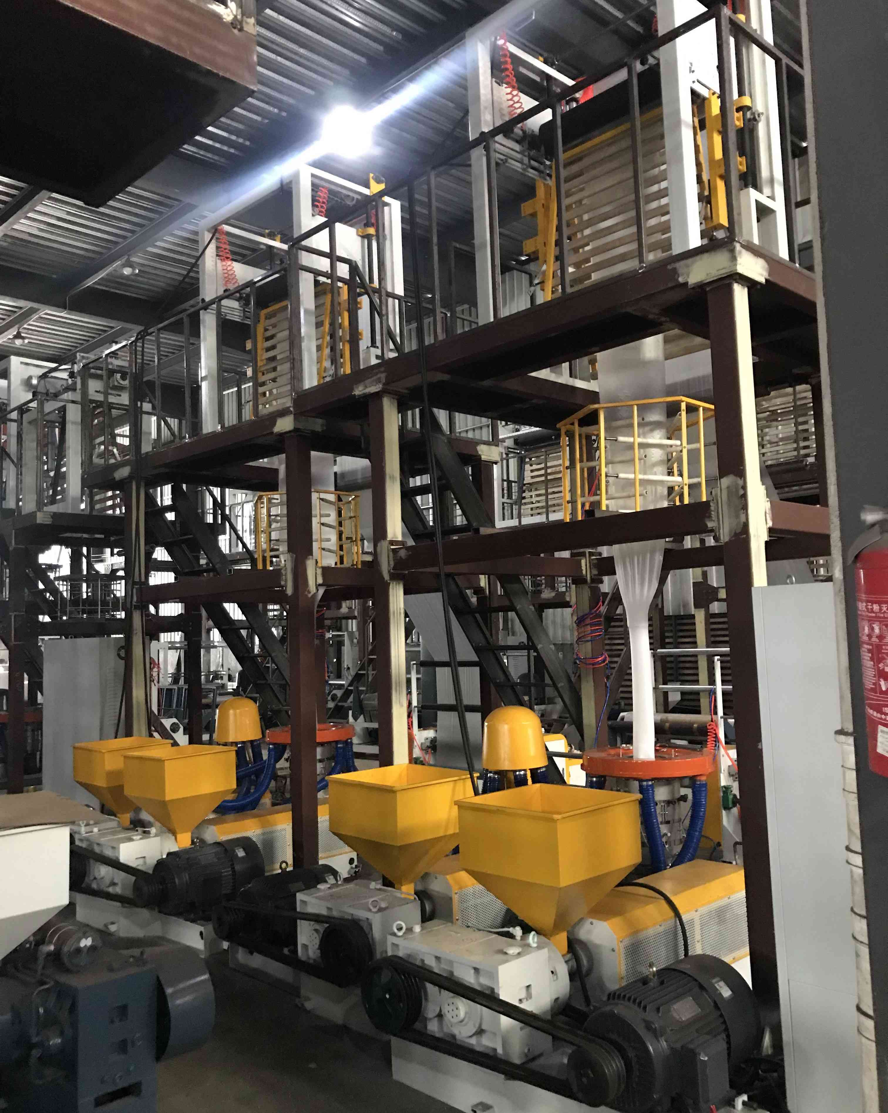 Машины для воздуха пленки ABA могут сделать пленку на 30% сильнее, чем пленка одного слоя, и производственные затраты могут быть сэкономлены до 50%. Основываясь на уникальной конструкции винта, до 80% CaCo3 можно добавить в машину с отличным эффектом смешивания.