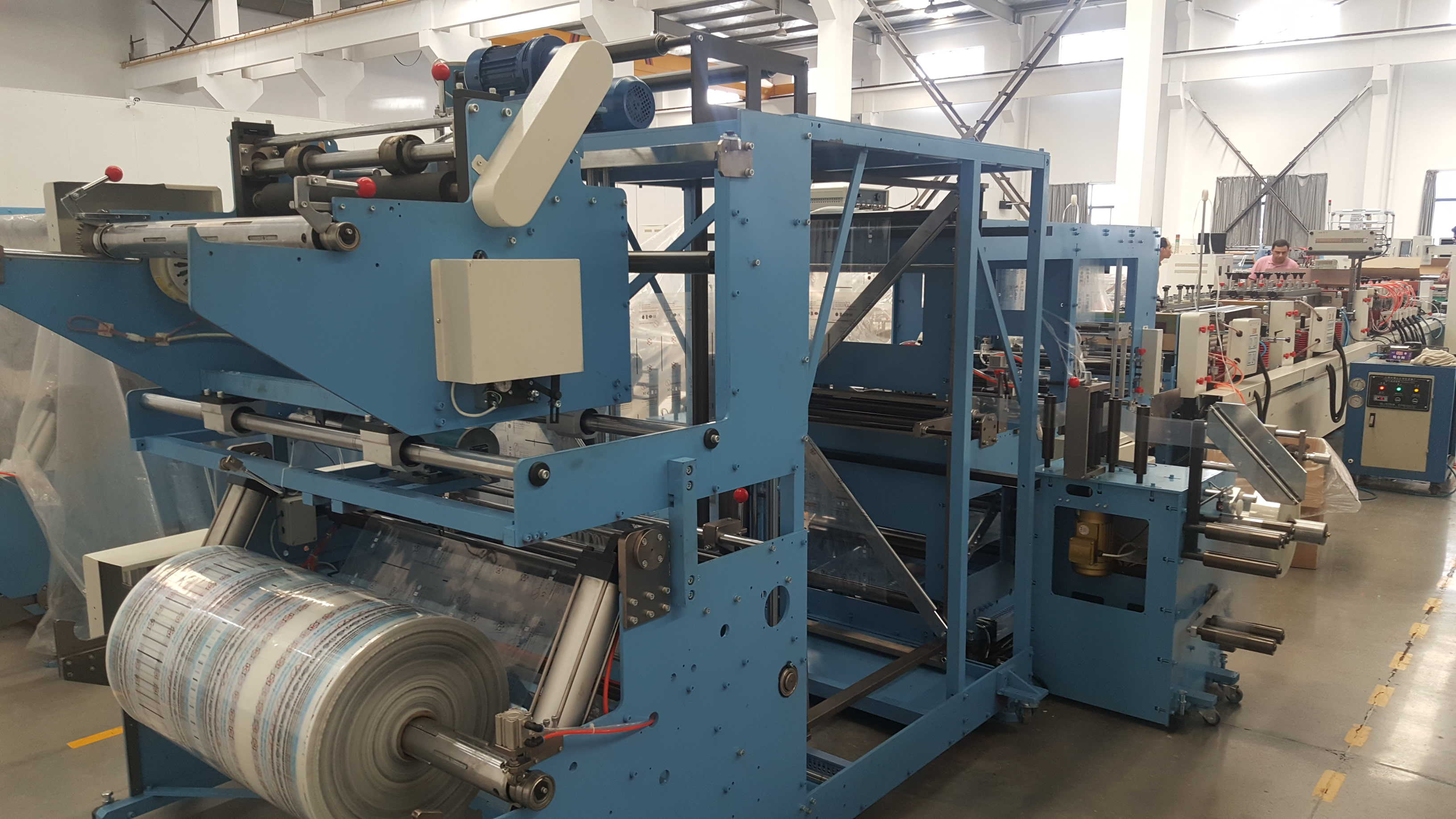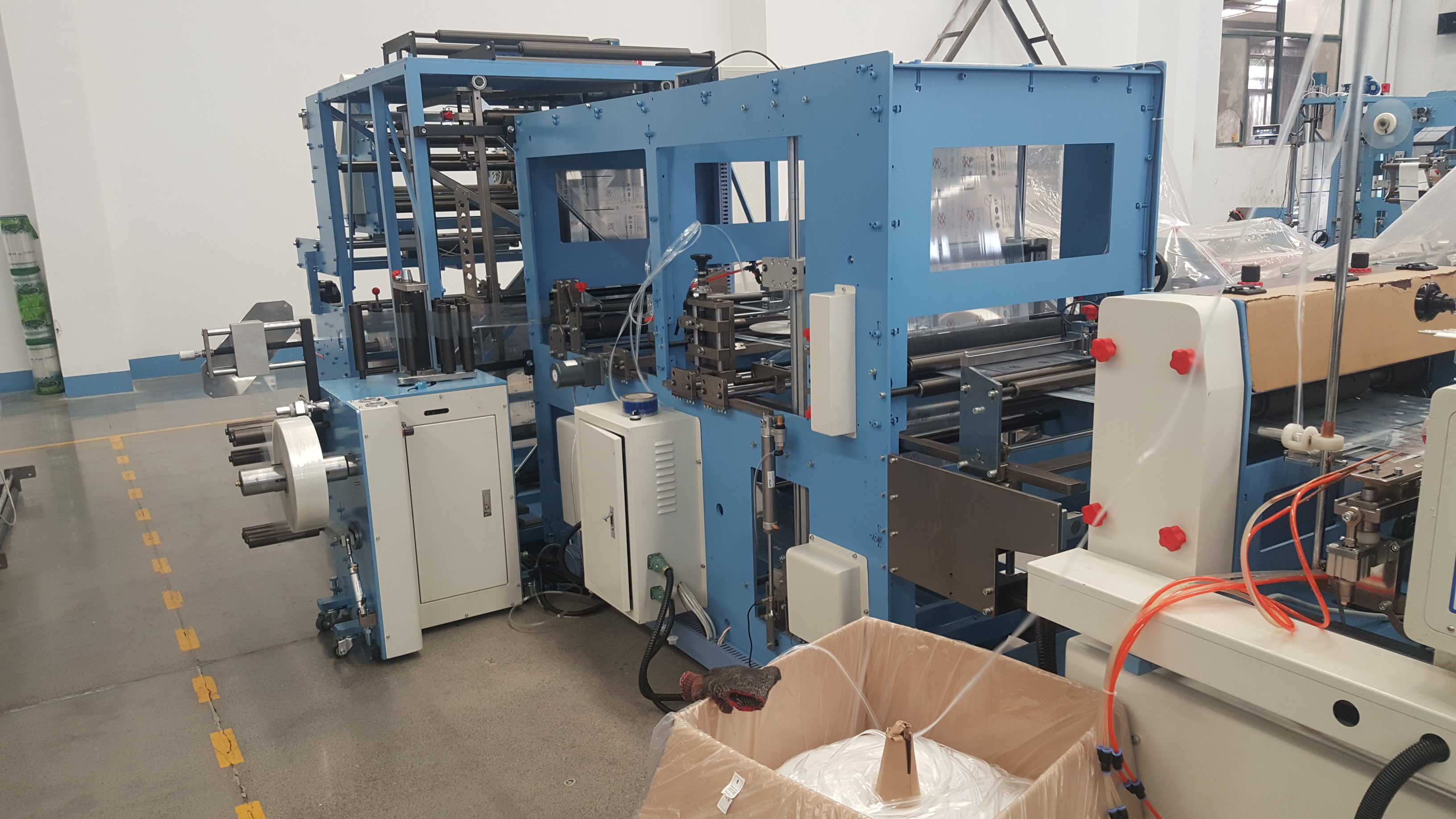 | Roll size | Body material/Maximum width:1200mm,Maximum diameter:600mm,3-inch paper core. Bottom material/maximum width:150mm,Maximum diameter:600mm, Maximum weight:35Kgf,3-inch paper core. Zipper material/Maximum width:250mm,Maximum diameter:600mm,2-inch paper core. |