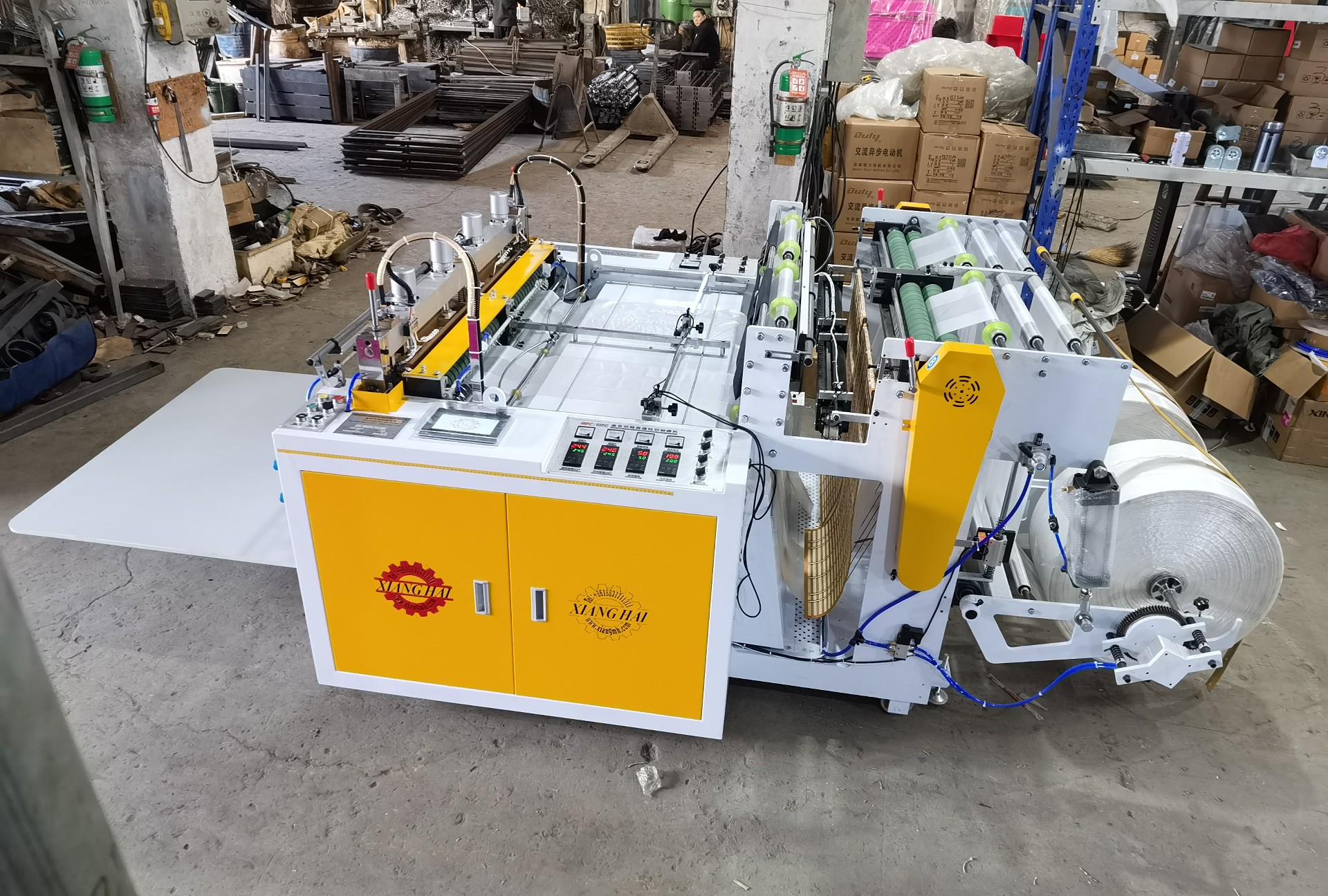 ♦это высокая степень автоматизации и хороший экономический результат, может быть и для изготовления цветных мешков, и для изготовления чистых мешков.