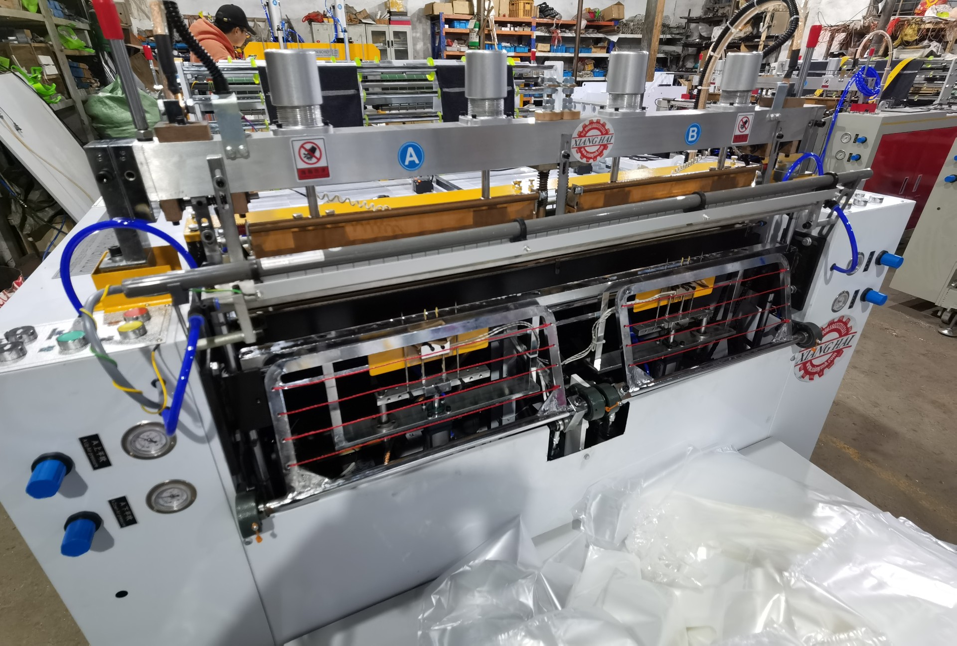 ♦Эта машина оснащена компьютером для установки длины мешка и партии и т.д., чтобы сделать мешок автоматизированный, также машина оснащена фотоэлементом, устройством автоматической подачи материала, устройством автоматической регулировки постоянной температуры, электростатическим устройством удаления, автоматическим счетным устройством и устройством сигнализации и т.д. это простая работа, стабильная работа и высокая скорость производства.