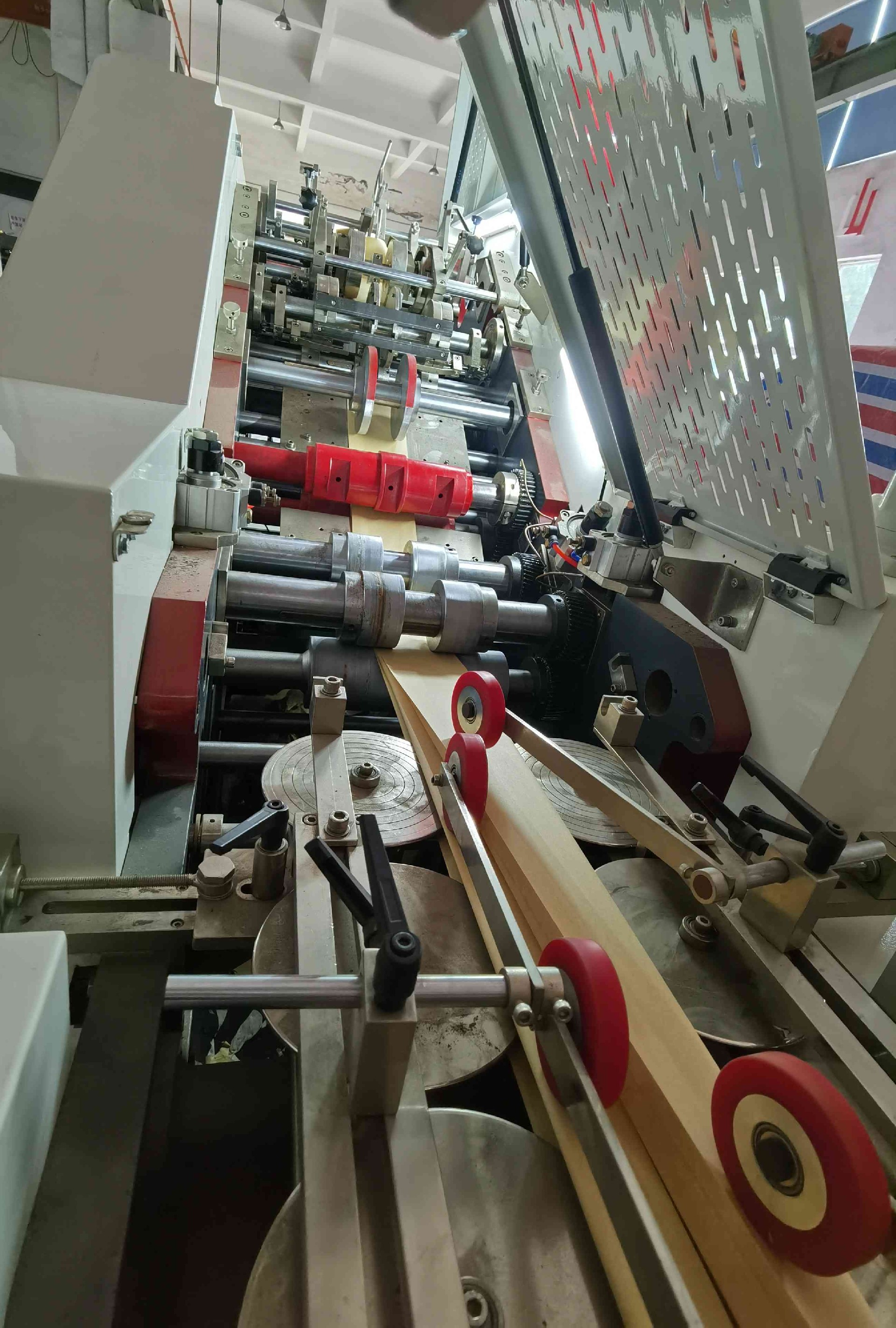 Эта машина имеет непрерывную функцию автоматического всасывания бумаги, склеивания, складывания, приклеивания дна и формирования пакета при ударе. Машина имеет автоматическую машину управления силой и функцию отслеживания цветовой маркировки. Все операционные процедуры контролируются ПЛК, сохраняя рабочую силу.