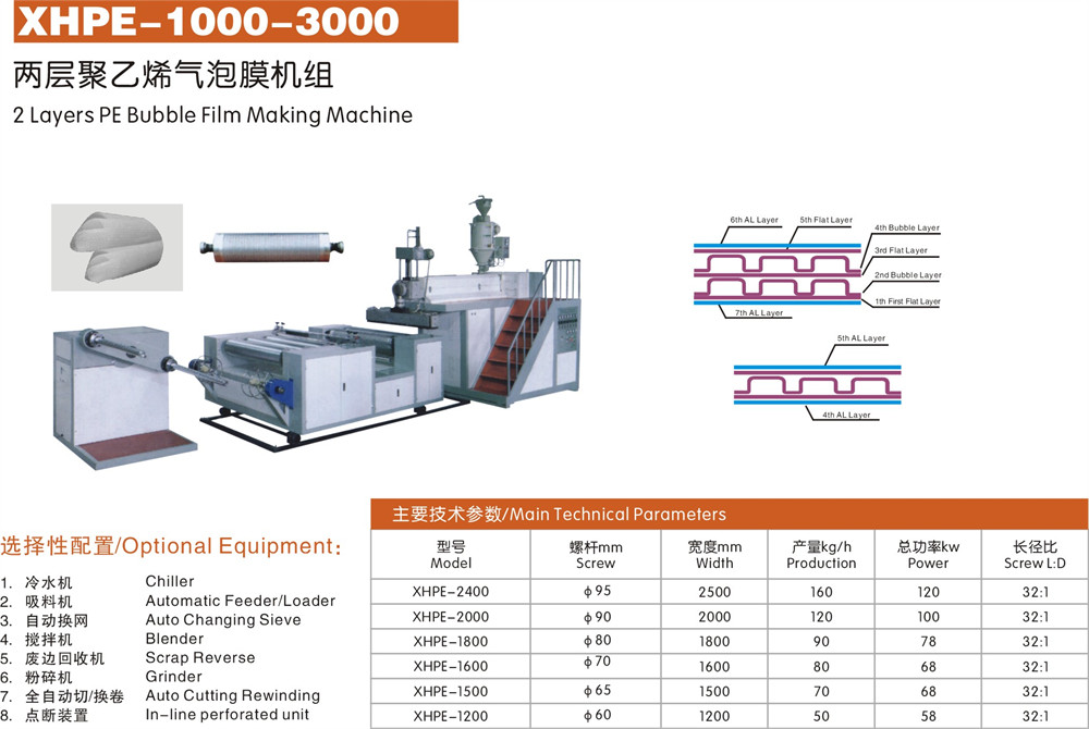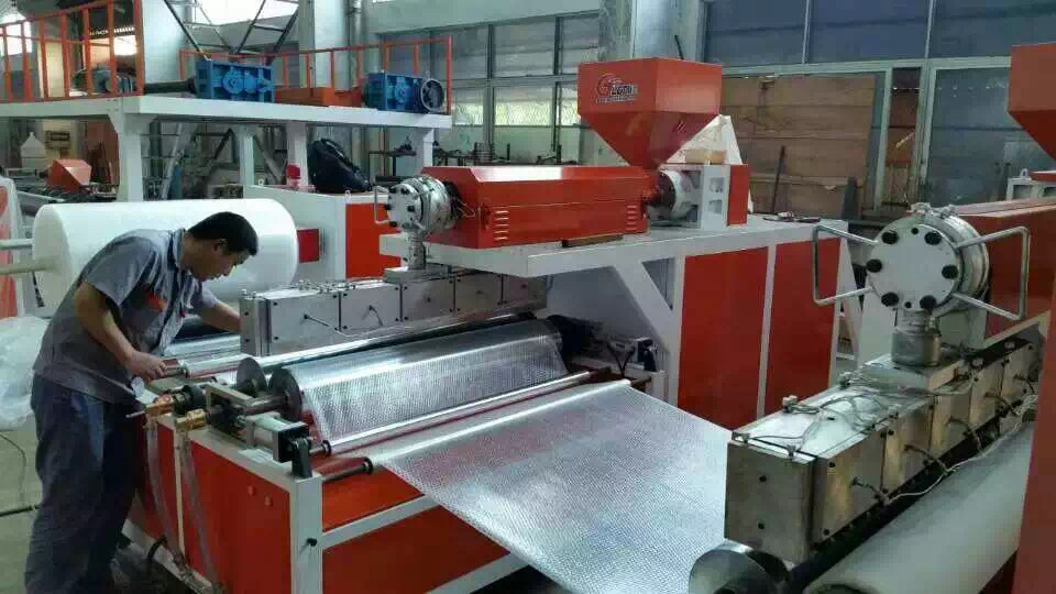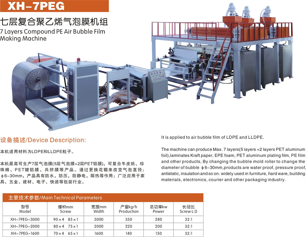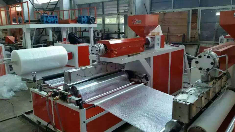 Эта машина в основном состоит из экструдера, штампа, вакуумная система отрицательного давления, пузырькообразующая форма, механизм тяги, катящийся плоский корпус, механизм обмотки, электрическая система управления. Добавьте сырье от порта погрузчика до обмотки готового продукта. Компонентная воздушная пузырь пленка машина принимает мгновенный процесс формования, desioned на основе машины. Крафтовая бумага, ПЭ пленка, жемчуг хлопок, ПЭТ алюминиевые покрытия пленка может соединить поверхность воздушного пузыря пленки и соединить плесень мгновенно. Он имеет научный, разумный и практический дизайн.