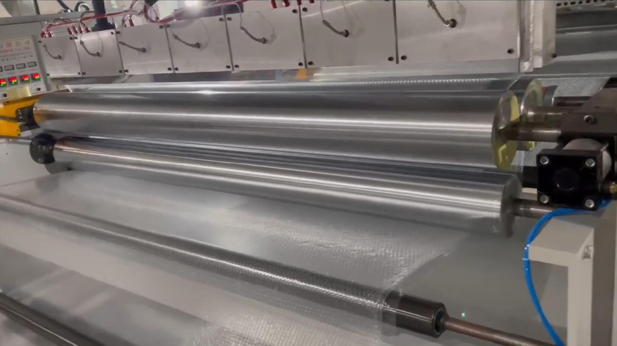 Эта машина в основном состоит из экструдера, штампа, вакуумная система отрицательного давления, пузырь формирования формы, механизм тяги, прокатка плоского корпуса, механизм обмотки, электрическая система управления. Добавьте сырье от порта погрузчика до обмотки готового продукта.